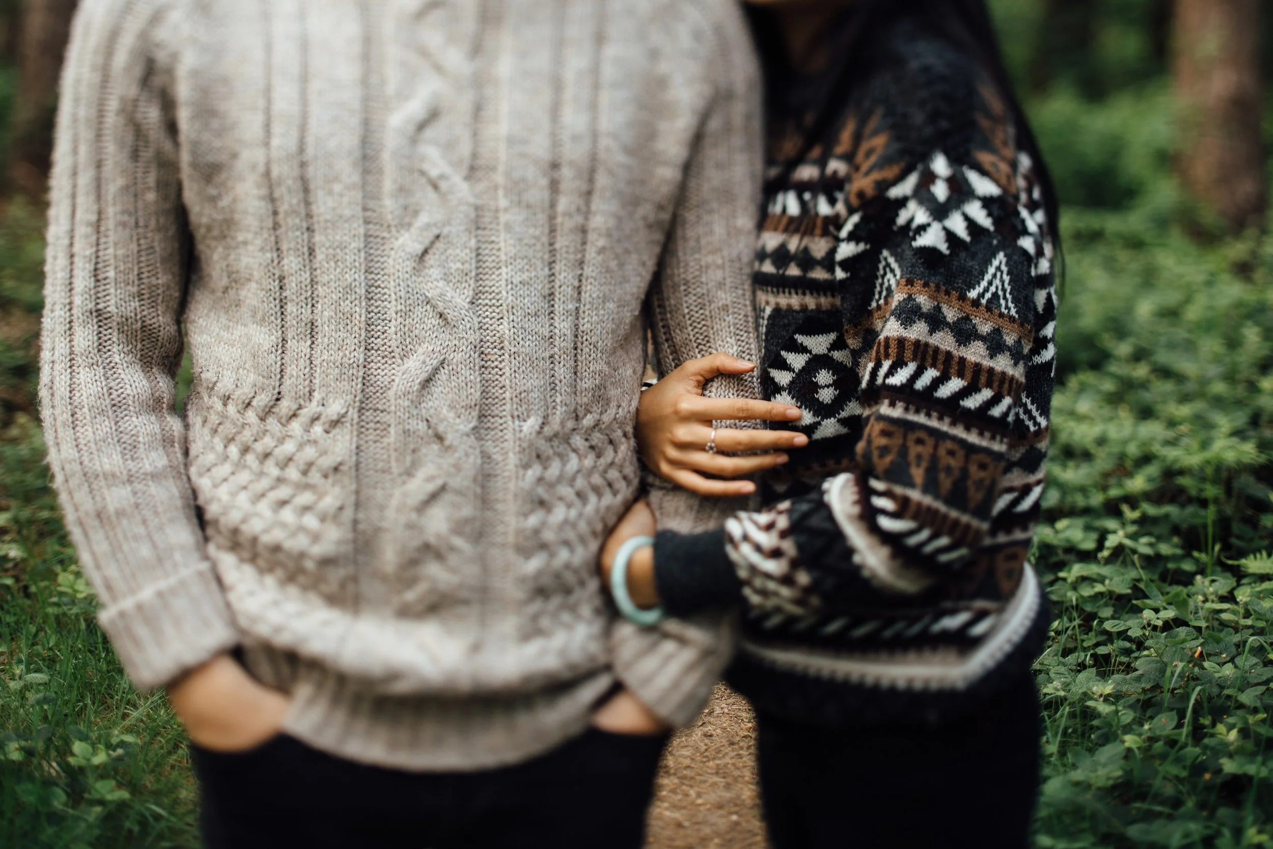 Chunky sweaters with funky prints paired with jeans or trousers.